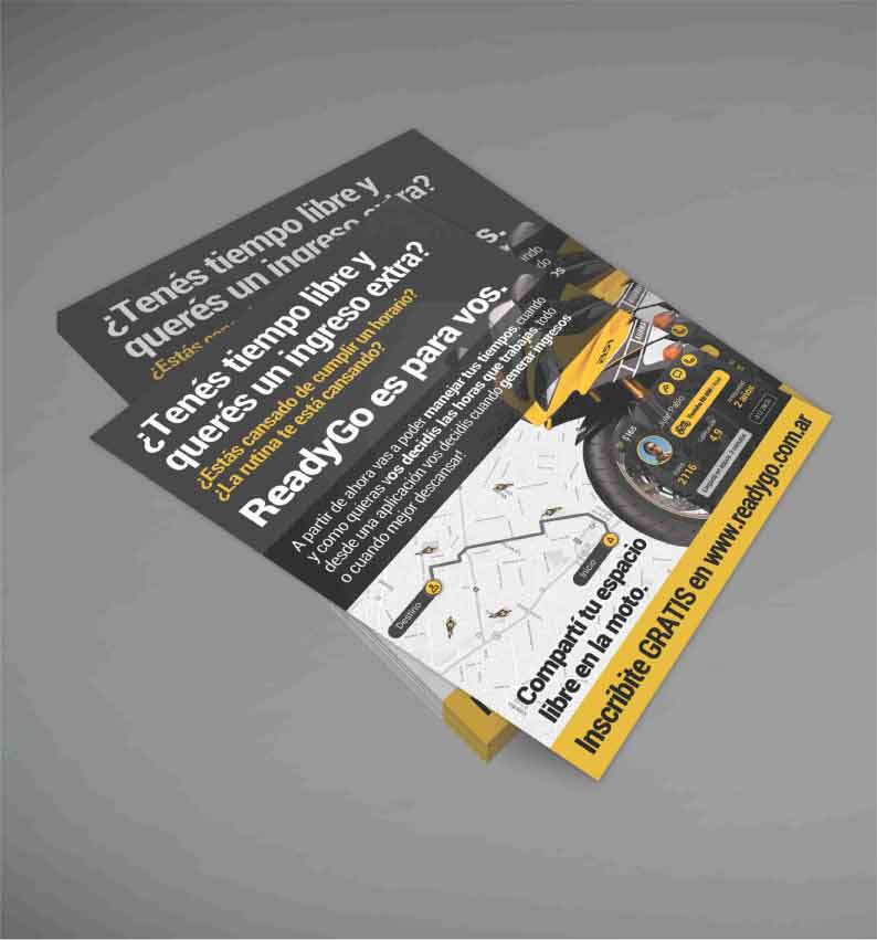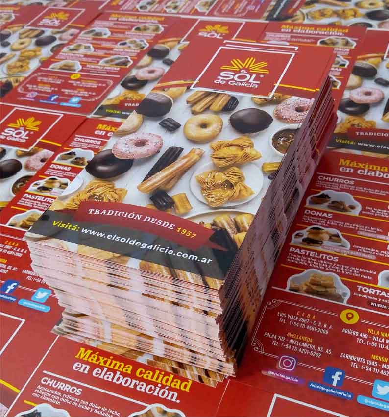 Flyers. Laser u offset. Full color, a un color, dos colores o ByN. Papel obra 70gr / 75gr / 90 gr. Papel ilustración 150gr. Variedad de tamaños. Terminaciones: dípticos, trípticos, zigzag. A partir de 100 u.